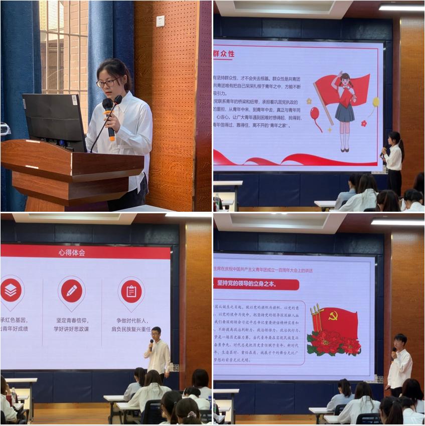 为深入学习贯彻习近平总书记考察中国人民大学时的重要讲话和总书记对高等教育工作的系列重要指示精神,坚持为党育人、为国育才,不断提高党支部成员思想水平、政治觉悟、道德品质、文化素养,深入学习领会习近平总书记在庆祝中国共产主义青年团成立100周年大会上的重要讲话和总书记对当代青年寄予的殷切期望,从共青团百年历史中汲取智慧和力量,在牢记初心使命中谱写新时代青春乐章,经济管理学院本科经贸类党支部于2022年5月19日在J0218举办了学习贯彻习近平总书记重要讲话精神主题党日活动。活动由党支部书记陈建奇主持,全体党员、本期发展对象参加了本次活动,活动分为两个部分:1、陈建奇同志领学习近平总书记重要讲话内容;2、党支部成员分享学习习近平总书记重要讲话精神心得。