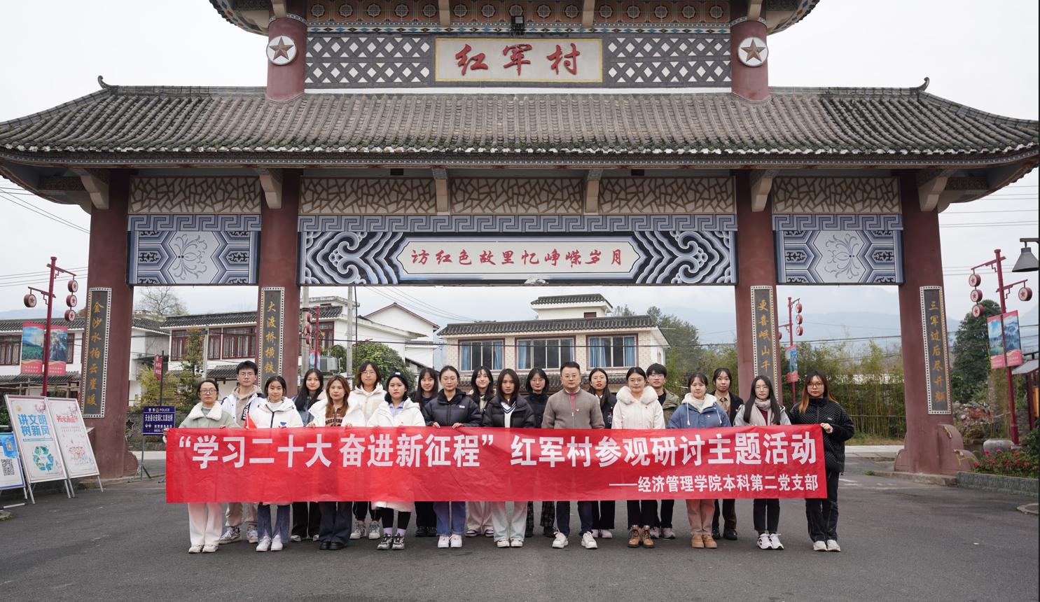 为深入学习贯彻党的二十大精神和学校第十五次党代会精神,切身体会党的十九大以来党中央带领全党全军全国各族人民在政治、经济、生态文明领域取得的瞩目成就,进一步坚定理想信念,强化宗旨意识。12月8日,经济管理学院本科第二党支部21名党员赴雅安市天全县红军村开展“青春献礼二十大,奋进担当向未来”校级示范性特色主题活动,重访红色故里,追忆峥嵘岁月。