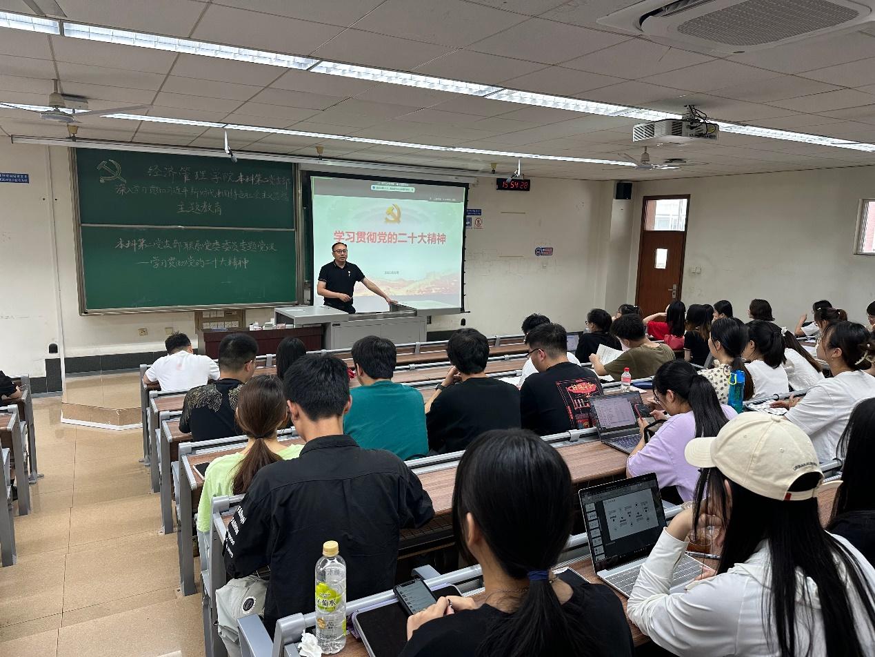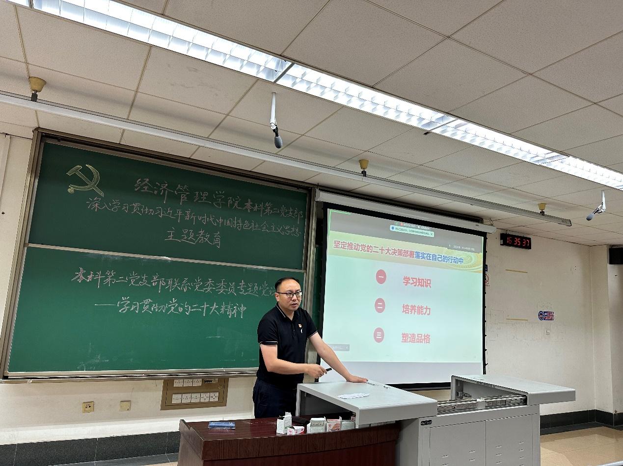 为扎实推进学习贯彻习近平新时代中国特色社会主义思想主题教育,6月8日,经济管理学院本科第二党支部邀请党支部联系党委委员杨宏毅副书记为党支部成员讲授专题党课,加强理论学习,接受思想洗礼。