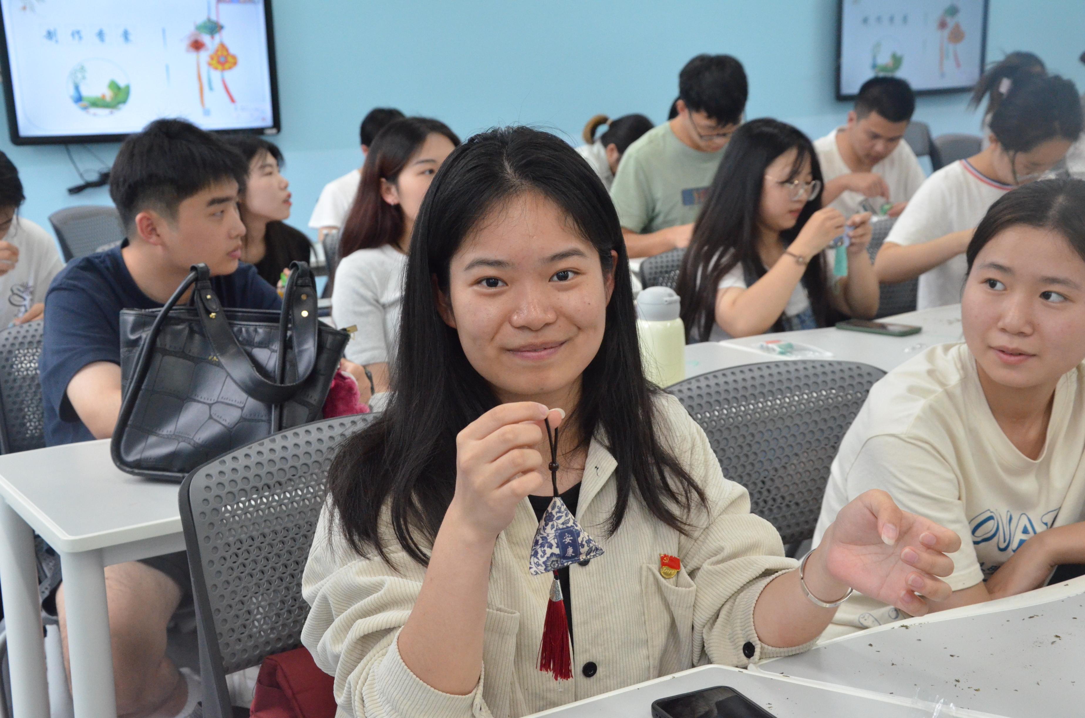 第三部分,支部成员动手制作艾草香囊。制作过程中支部成员相互交流、相互帮助,在浓浓的民俗味里,感悟中华优秀传统文化情结。支部书记张先凌强调,香囊既有驱虫避疫的功能,也代表着屈原爱国爱民的品德,希望同志们都能怀爱国之心、践报国之志,在服务人民、奉献社会中实现人生价值。