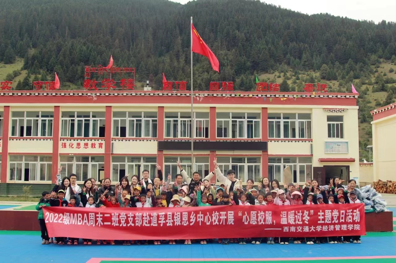 近日,由西南交通大学经济管理学院2022级MBA周末二班临时党支部发起的“心愿校服·温暖过冬”主题党日活动在四川省甘孜州道孚县银恩乡中心校如期举行。该活动不仅为道孚县银恩乡中心校100余名孩子送上了新校服、新书包和学习用品,更送去了西南交大莘莘学子的暖暖爱心。