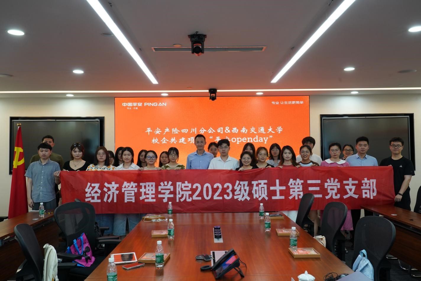为积极响应国家关于培养高素质、专业化经济管理人才的号召,加强理论与实践的结合,提升学生对保险行业的认知,提升学生就业竞争力,6月13日,西南交通大学经济管理学院陈海波老师带队2023级硕士第三党支部走进中国平安产险四川分公司开展“学研融实践,智启未来程”主题活动,深入探索保险行业的数字化前沿,与企业高管及优秀校友共同探讨行业发展新趋势。