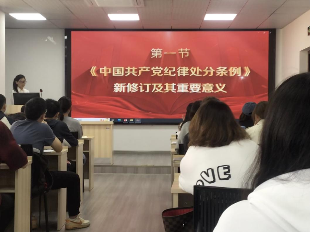 10月23日中午,经济管理学院团委书记贾佳老师以视频方式为大家讲解了《中国共产党纪律处分条例》相关知识。贾佳老师着重强调了党的六大纪律,即政治纪律、组织纪律、廉洁纪律、群众纪律、工作纪律和生活纪律。通过讲解,让大家深刻认识到要做到学纪、知纪、明纪、守纪,时刻以党的纪律严格要求自己,保持党员的先进性和纯洁性。贾佳老师明确指出,入党积极分子要做到学纪、知纪、明纪、守纪,时刻以严格的纪律要求规范自身行为。晚上,来自学校晚晴讲师团的徐嘉宁老师为大家讲解了中国共产党的指导思想。徐嘉宁老师详细阐述了党的指导思想的产生背景、核心内容和重大意义。让大家更加深入地了解了中国共产党在不同历史时期,始终坚持以正确的指导思想为引领,不断推进中国革命、建设和改革事业的发展。