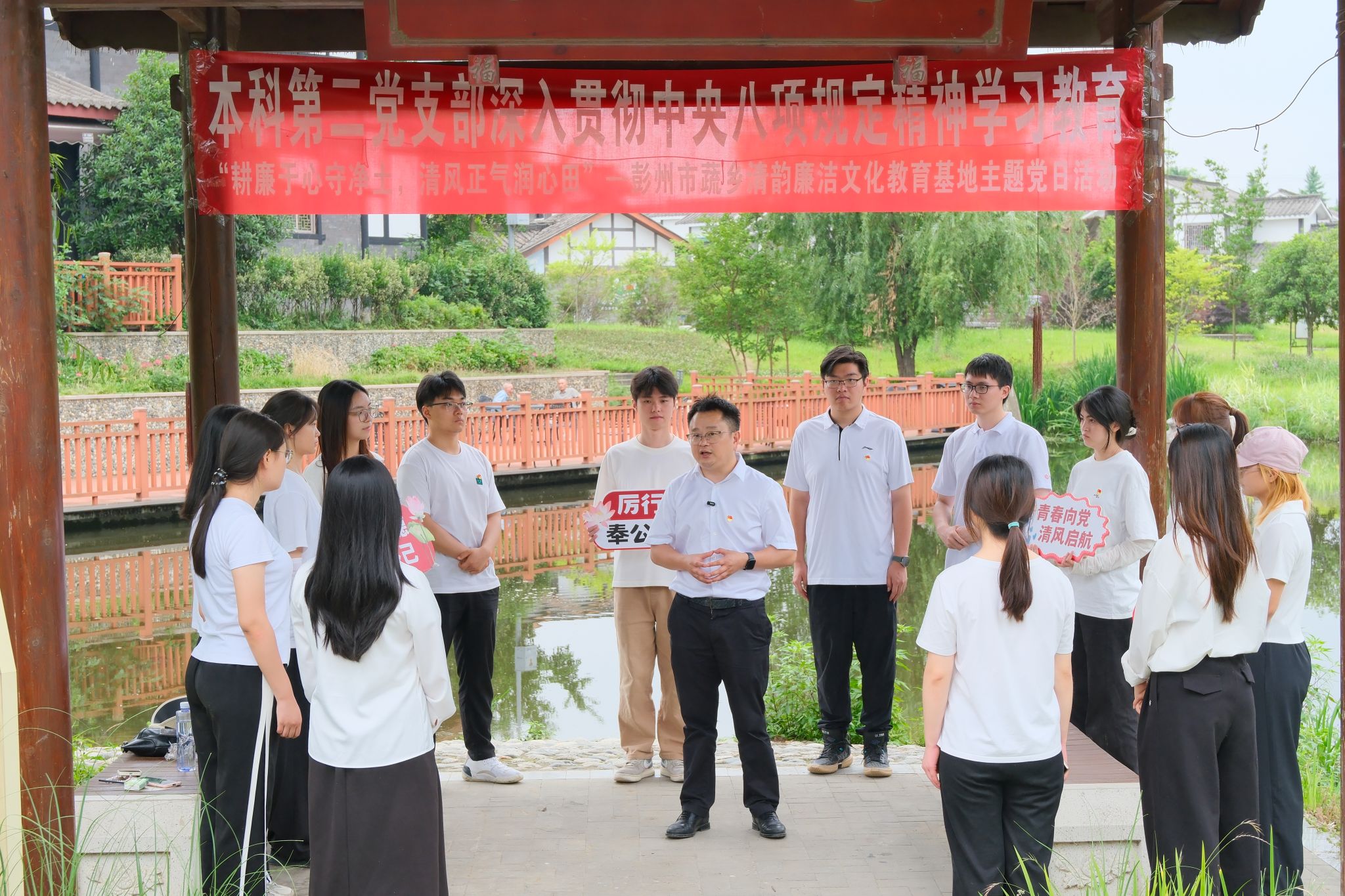 为深入贯彻中央八项规定精神学习教育,强化党员的廉洁自律意识,筑牢拒腐防变的思想防线,2025年5月29日,经济管理学院本科第二党支部19名党员、积极分子在党支部书记陈建奇的带领下,前往位于四川省彭州市的“蔬乡清韵”优秀传统文化教育基地,开展“耕廉于心守净土,清风正气润心田”深入贯彻中央八项规定精神学习教育主题党日活动。