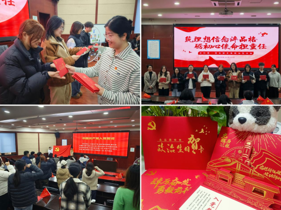 为增强党员的组织归属感和身份使命感,12月18日,党支部举办庄严而温馨的“政治生日会”。学院党委副书记、纪委书记余小英与党支部书记贾佳共同为十二月入党的同志颁发政治生日贺卡及纪念礼物,并带领全体党员重温入党誓词。活动还结合前期“心语卡片”中反馈的部分问题,进行了集中解答与思想引导。仪式不仅加深了党员之间的情感联结,更进一步强化了对党组织的认同与归属。